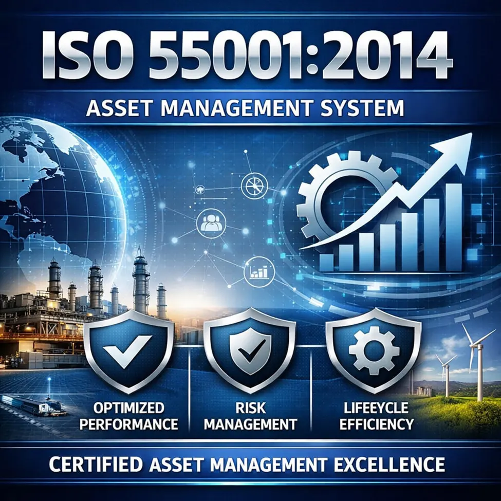 ISO 55001:2014 is an international standard for Asset Management Systems (AMS). It provides a standardized framework for businesses to manage their physical assets efficiently throughout their lifecycle, from purchase and operation to maintenance and disposal. The standard helps organizations optimize value, limit risk, and assure sustainable performance of assets while aligning with organizational objectives.